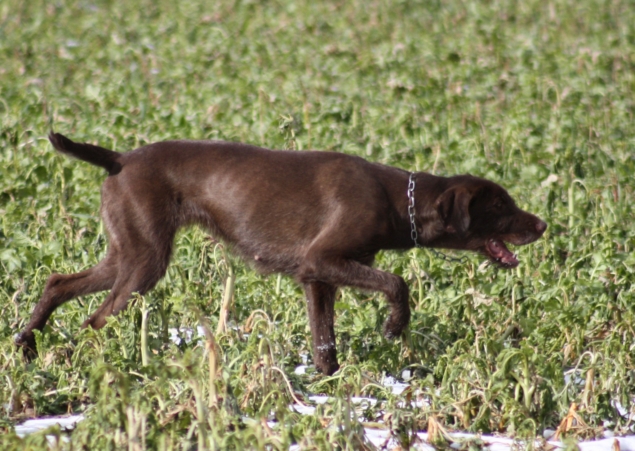 Im Rahmen einer Nachsuche auf ein krankes Reh, musste ich Bessy schnallen, da das Reh schwerkrank vor uns flüchtete.